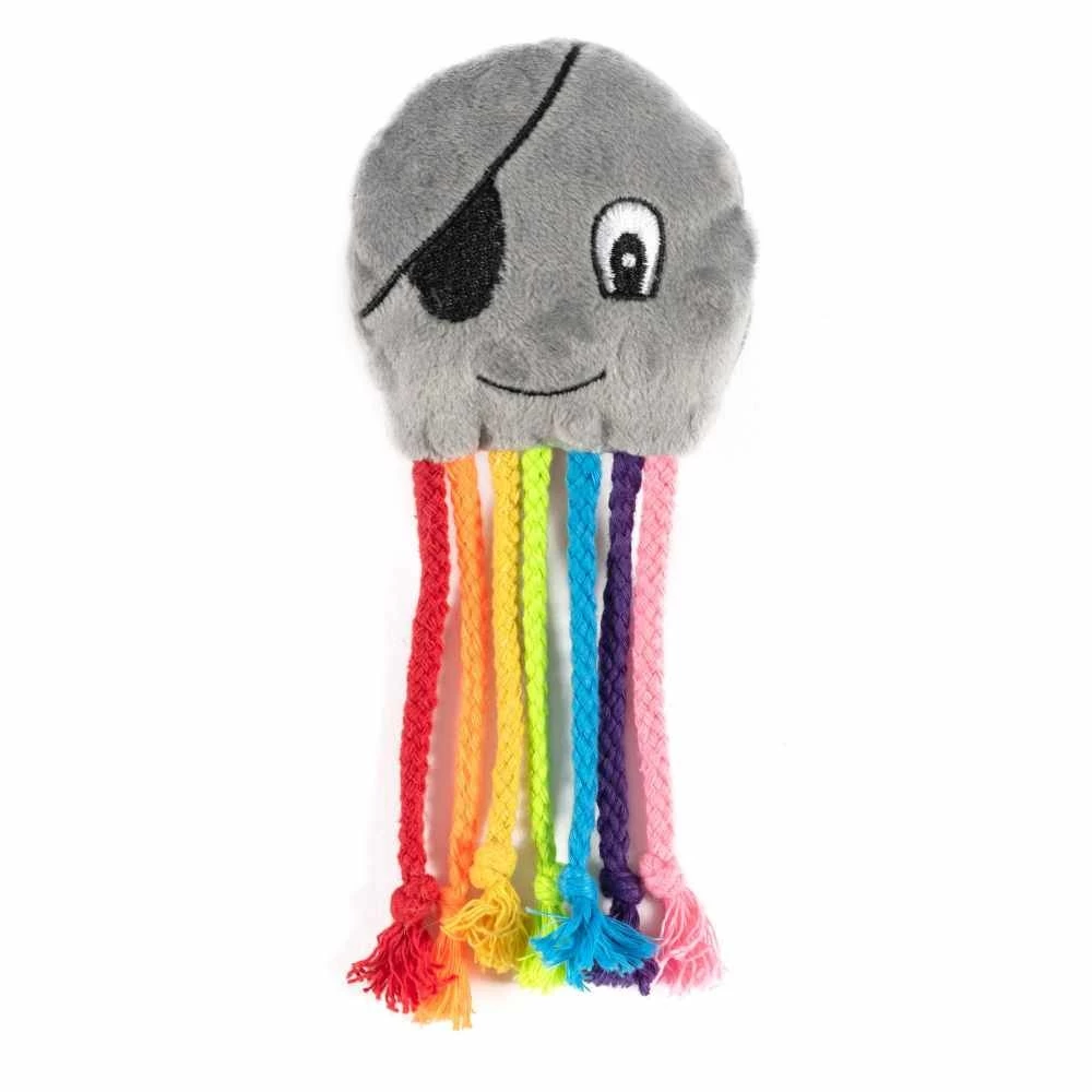 De leuke octopus heeft lange en felgekleurde tentakels. Het knuffel speeltje is ontworpen om lekker tegen aan te liggen en om ermee te knuffelen. Het is ontworpen voor puppy’s en kleine honden en is gemaakt van verschillende materialen. De pieper zal de hond zeker interesseren. Het speeltje heeft een gerecyclede vulling.
