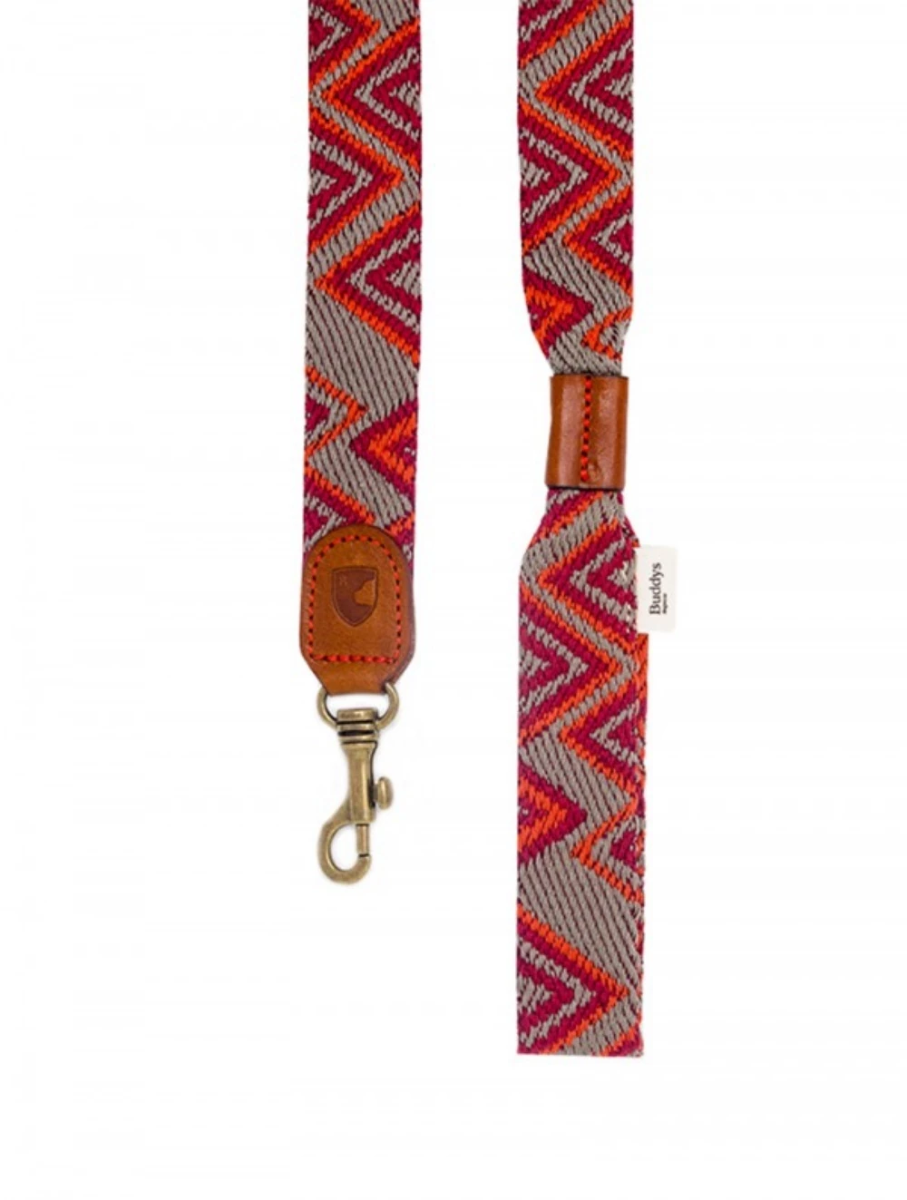 Deze oranje Peruvian hondenriem is een opvallend exemplaar uit deze canvas collectie van Buddys. De lijnen zijn van hoge kwaliteit, worden geheel met de hand gemaakt en in prachtige tinten uitgevoerd. Het motief is geïnspireerd door de Peruaanse Inca’s. Uw hond zal met deze riem er zonder twijfel prachtig uitzien. de riemen zijn van gevlochten met Italiaans biologisch katoen en afgewerkt met plantaardig gelooid Italiaans leer en draaibare zilveren (nikkelvrij) hardware. De lange riem is drievoudig verstelbaar.