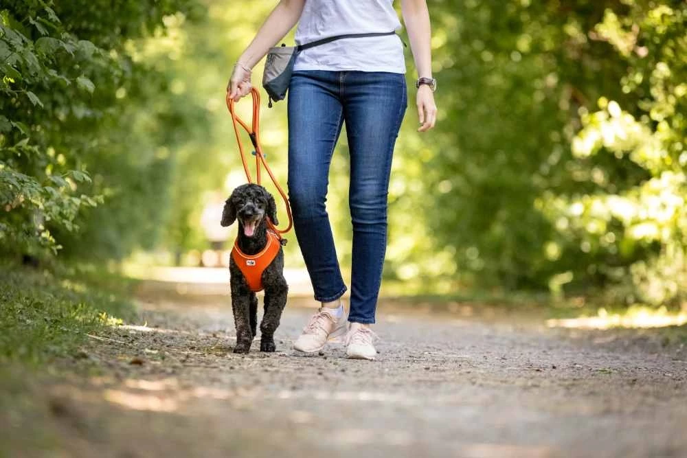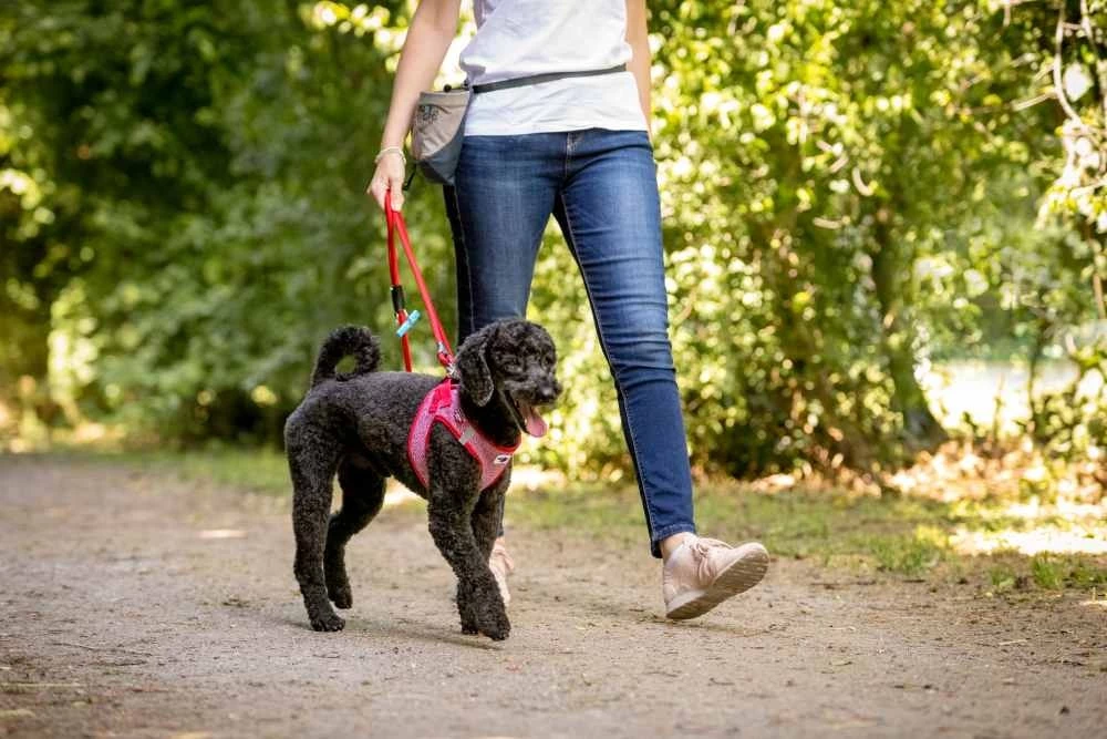 De nylon heupriem is uitgerust met een lichte aluminium gesp en heeft een lengte van 110 cm. Je kunt het zakje comfortabel om je heup dragen terwijl je je handen vrij hebt om je hond te trainen.