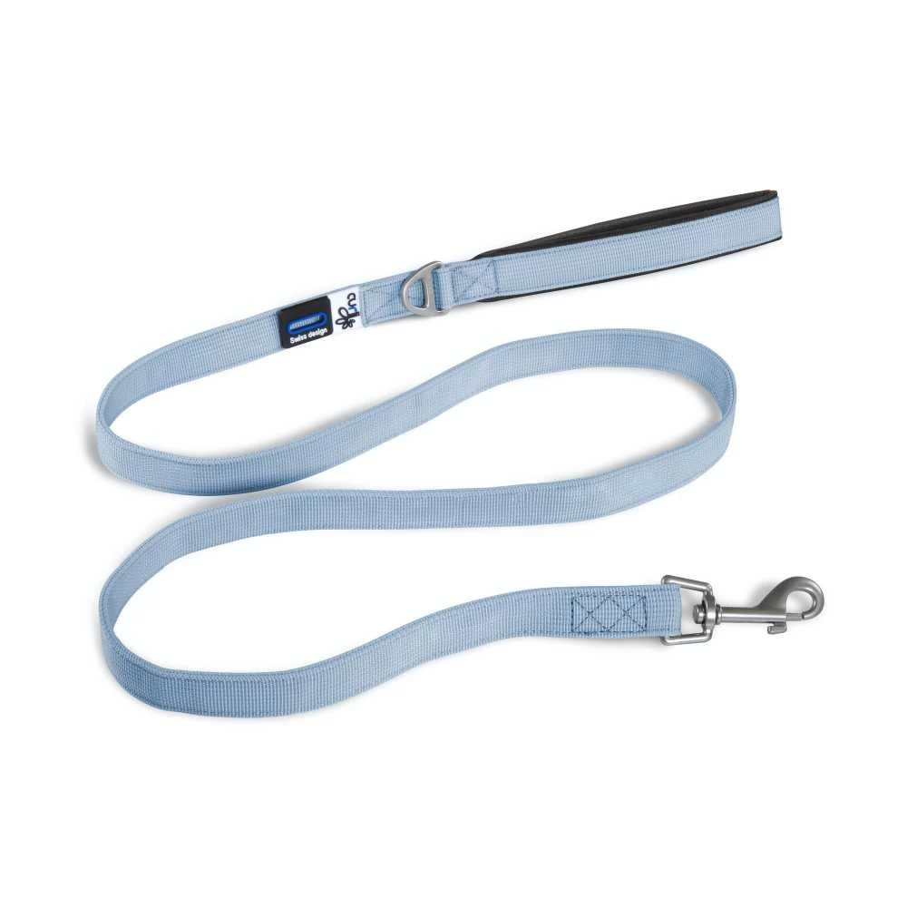 Deze lichtblauwe hondenriem is gemaakt van Zwitserse topkwaliteit nylon.