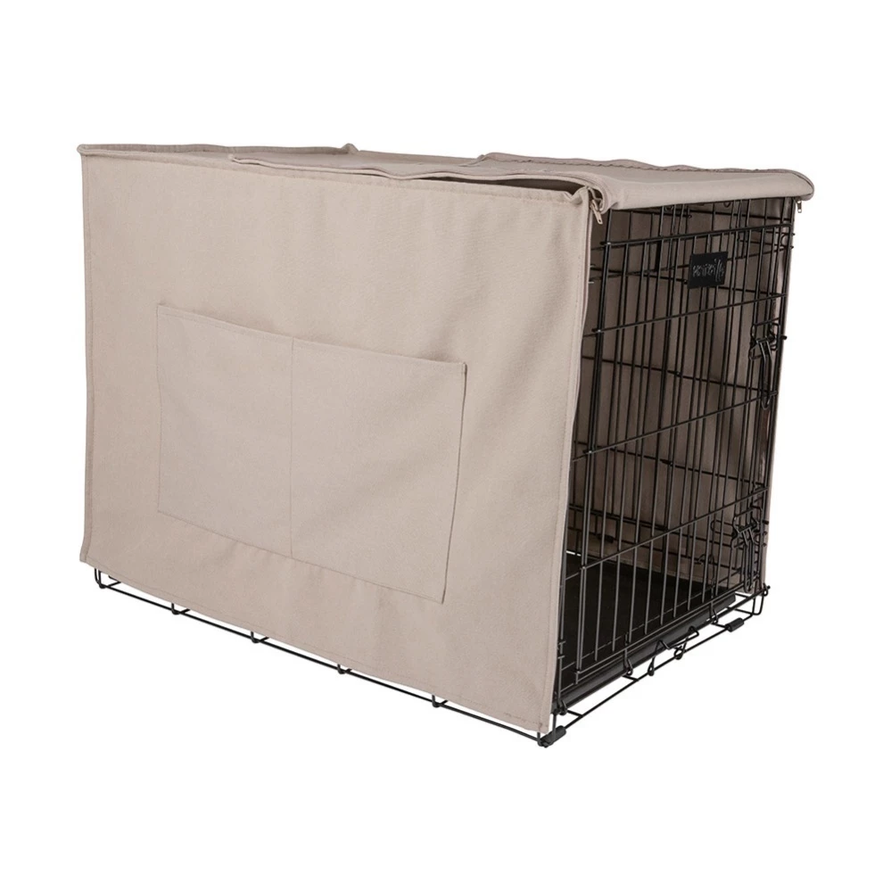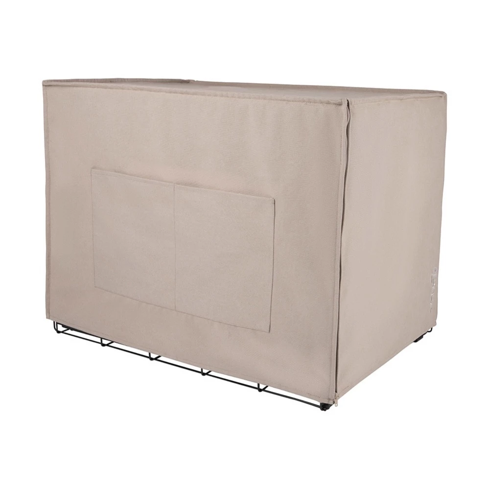 De beige bench hoes is met een rits geheel af te sluiten maar u kunt ook alleen de voorkant of één van de zijkanten openen. Bij de tweedeurs bench, kunt u kiezen via welke deur de hond zijn veilige schuilplek kan betreden. Aan één zijde van de hoes bevindt zich een opbergvak voor het opbergen van losse spulletjes zoals bijvoorbeeld speelgoed.