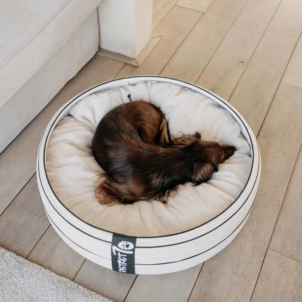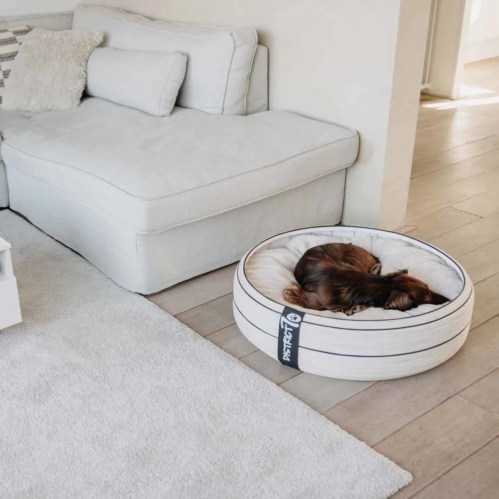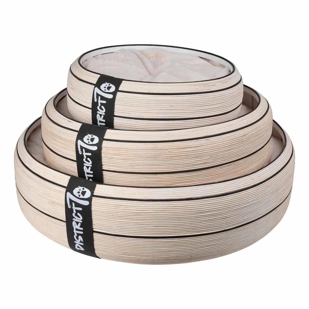 Deze bijzondere mand past in elk interieur door de zachte kleuren en de luxe uitstraling. De mand is geschikt voor honden en voor katten. De buitenkant van de hondenmand is gemaakt van stevig bamboe. Hierdoor krijgt de mand een heel sfeervol uiterlijk. De lichte kleur met de zwarte lijn zorgt voor een speels effect.Â