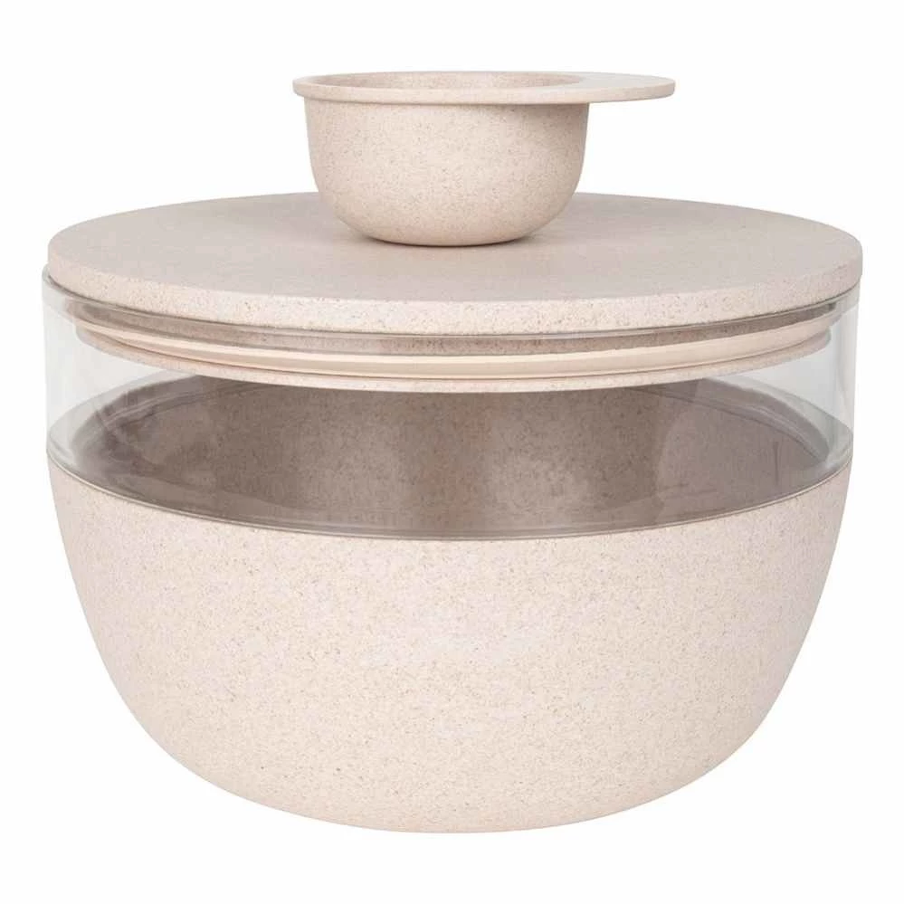 Deze fraaie voorraadpot is gemaakt van natuurlijk bamboe materiaal en is voorzien van een siliconen anti-slip bodem. Hierdoor zal de voorraadpot stevig blijven staan. Ook kunt u de voorraadpot in de vaatwasser reinigen. Door de ruime inhoud van 2250 ml en het fraaie design is de pot gemakkelijk mee te nemen. De vacuüm siliconen sluiting houdt de geur van het eten in de pot en zorgt ervoor dat de inhoud vers blijft. De pot wordt geleverd Inclusief een bamboe schepje.
