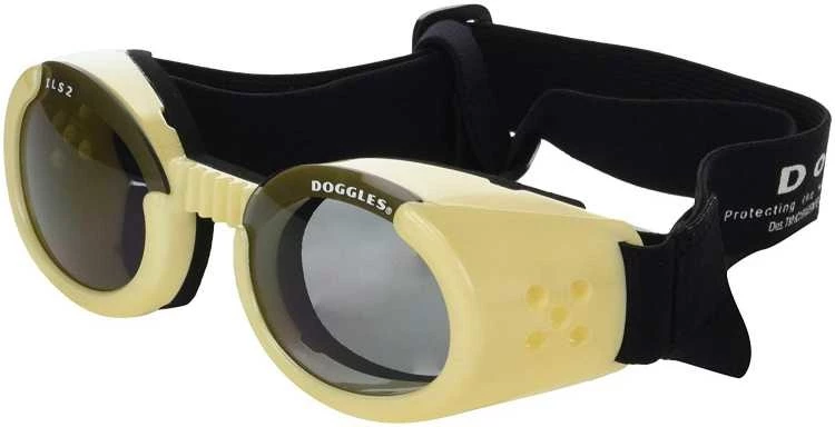 Dit is een uitstekende beige hondenzonnebril van Amerikaanse kwaliteit. Ze zijn vooral ontwikkeld om de ogen van de hond te beschermen, bijvoorbeeld als de hond last heeft van irritatie door zand en/of zonlicht. De hondenzonnebril biedt 100% bescherming tegen UV straling en heeft onbreekbare glazen. Ook zijn de glazen behandeld zodat deze niet kunnen beslaan.