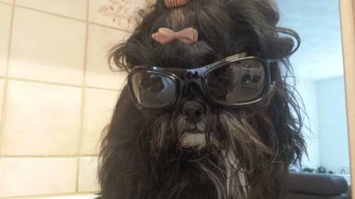 Deze zwarte hondenzonnebril is voorzien van normale glazen en wordt geleverd inclusief een opbergzakje.