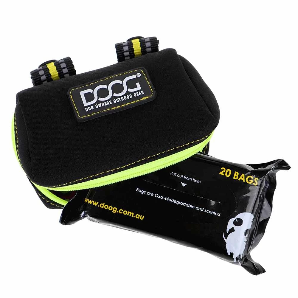 Voor de baasjes die niet graag een tas of riem dragen tijdens het uitlaten van de hond is de nieuwe DOOG Walkie Pouch het antwoord. Dit handige, lichtgewicht etui wordt geleverd met 20 poepzakjes die als tissues uit een kleine opening aan de voorkant worden getrokken.