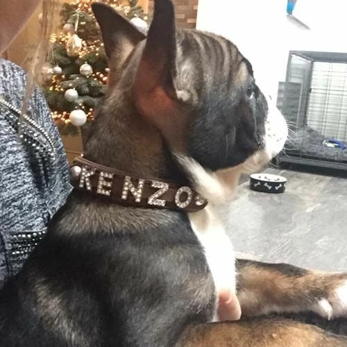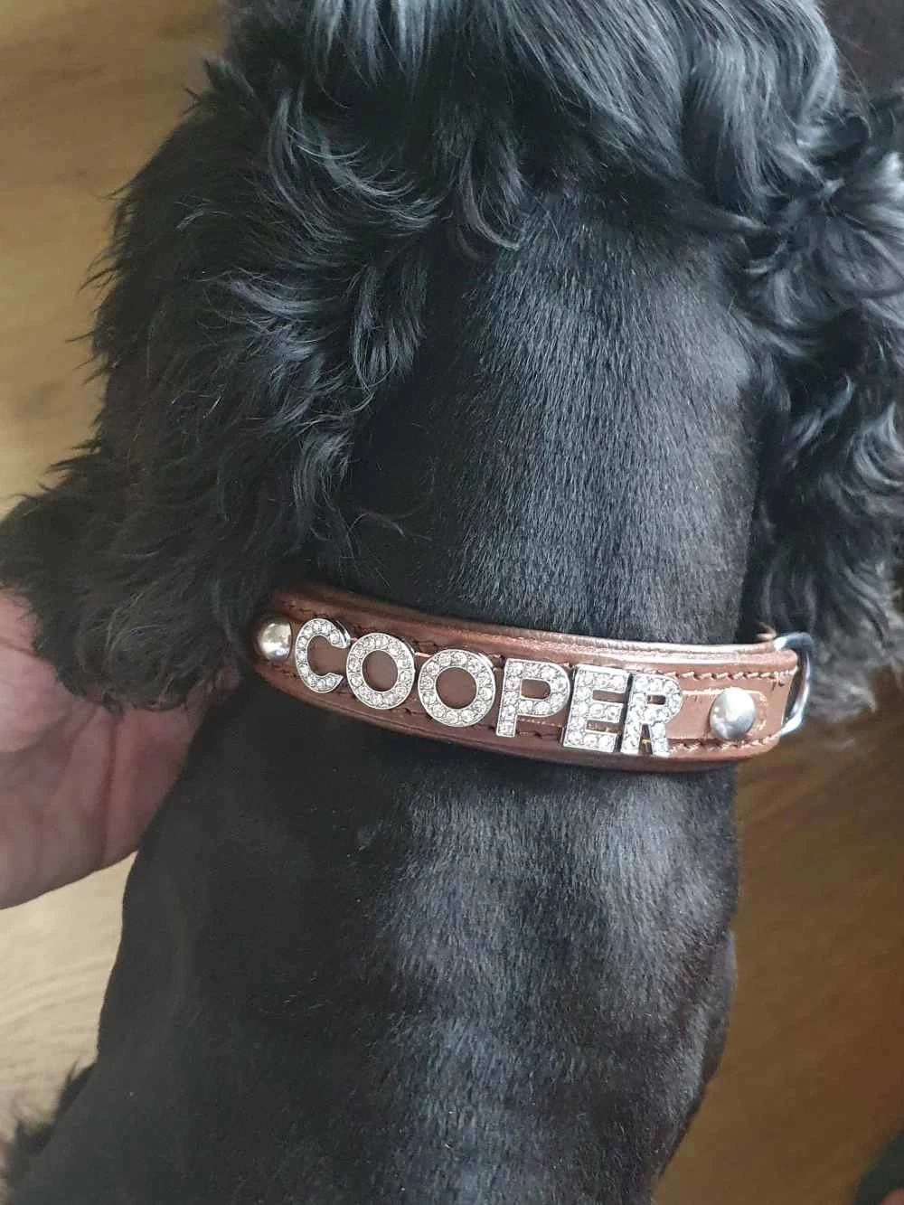 Deze bruine halsband is gemaakt van dubbellaags leer en is gevoerd met kalfsleer. Wat is er leuker dan een mooie leren halsband met de naam van uw huisdier in fraaie strass letters op de halsband ? Een echt uniek exemplaar voor uw hond, waarmee u en uw hond zeker op zullen vallen !