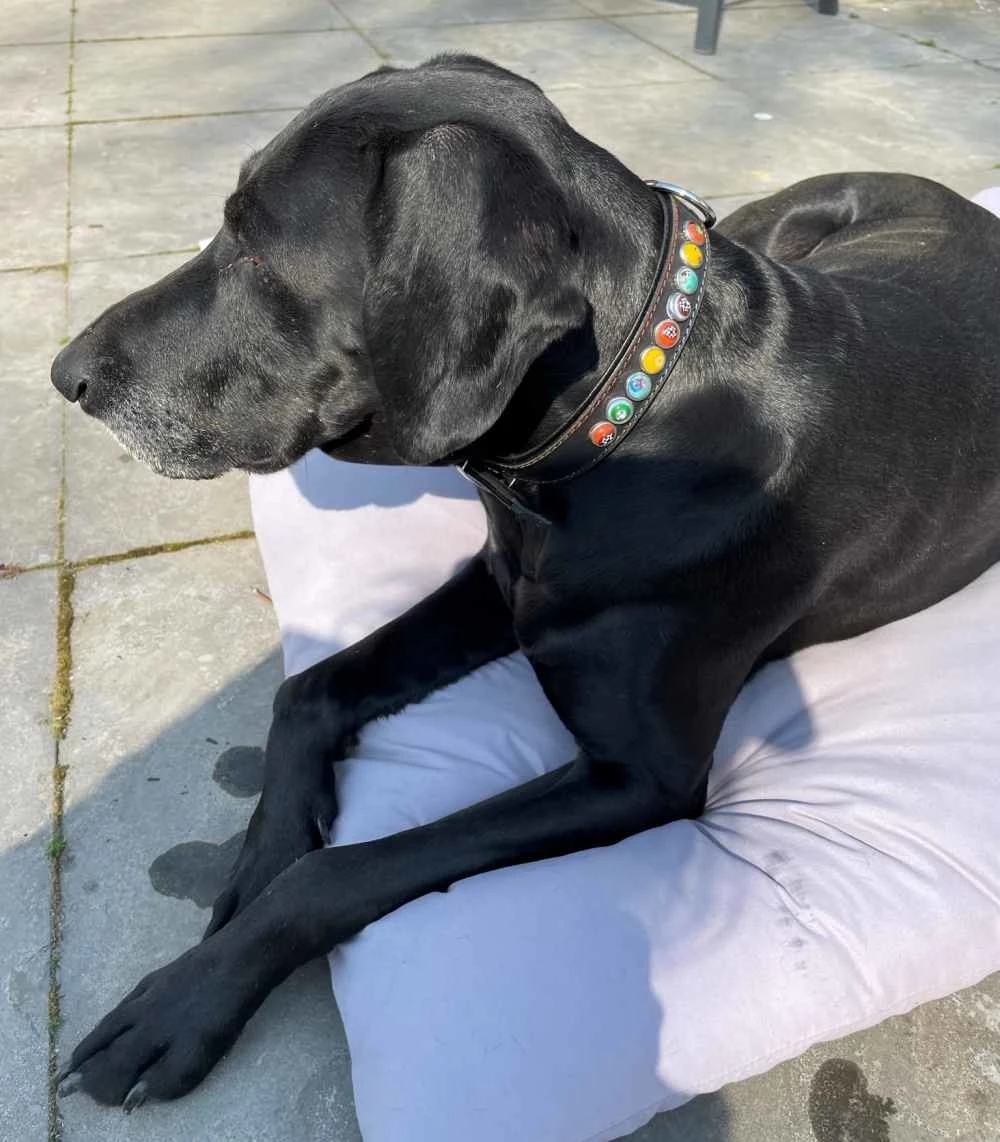 Een prachtige set met de bijpassendehondenriem.