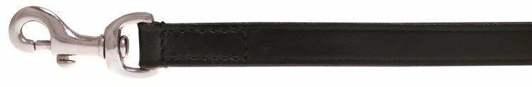 Een mooie hondenriem van effen zwart leer. De riem is voorzien van zilverkleurig beslag.