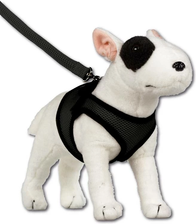 Een comfortabel zwart tuigje gemaakt van nylon. Dit is een instapmodel. Aan de bovenkant, op de rug, bevinden zich een verstelbare klittenbandsluiting en een kliksluiting. De bijpassende riem 140 cm x 15 mm kunt u direct bijbestellen.