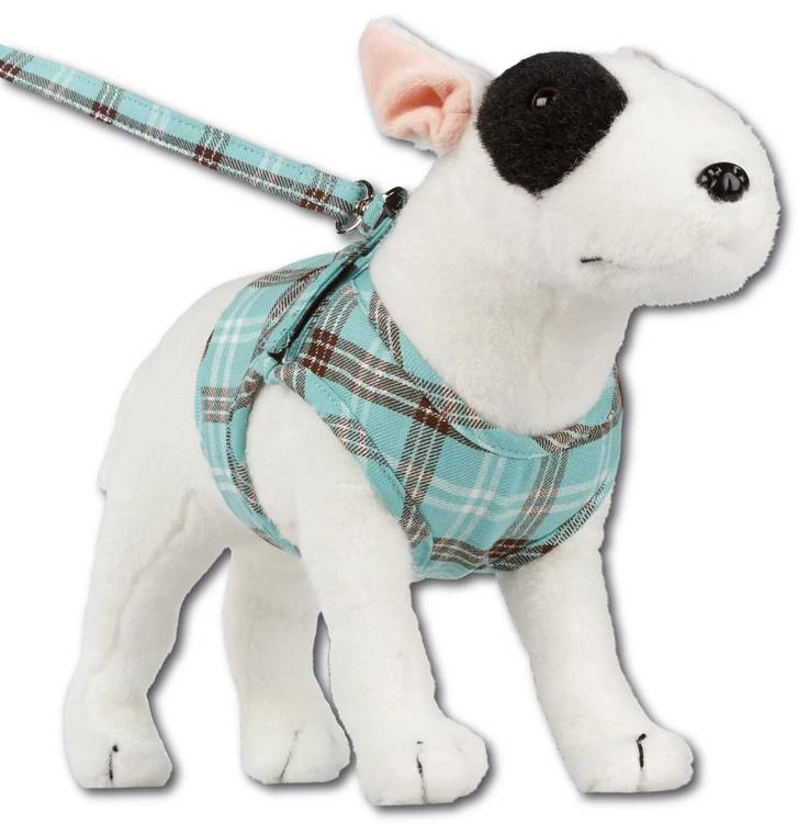 Dit comfortabele hondentuigje van katoen is in een turquoise Schotse ruit uitgevoerd. Aan de bovenkant van het tuigje, op de rug, bevinden zich een sluiting met klittenband en een kliksluiting. De bijpassende riem 140 cm x 15 mm kunt u direct bijbestellen.