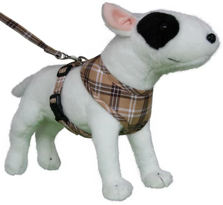 Dit is een leuk en comfortabel katoenen hondentuigje dat is uitgevoerd in een beige Schotse ruit. Het tuigje heeft aan beide zijden een kliksluiting en is voorzien van een verstelbare borstband. U trekt het tuigje over de kop van de hond aan.Â