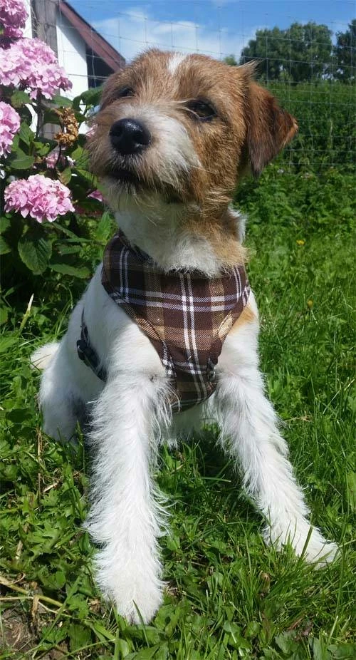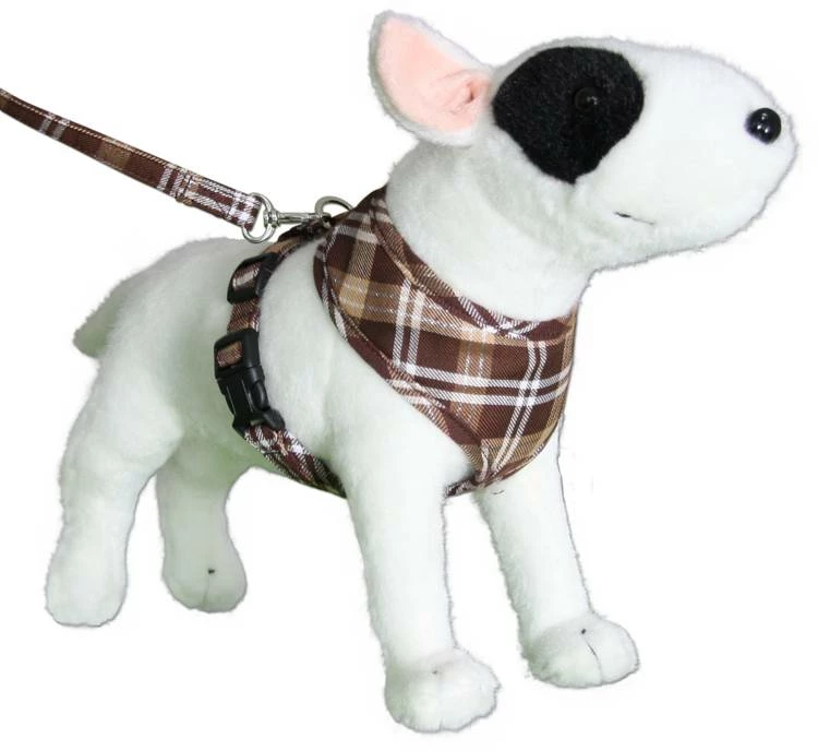 Dit is een leuk en comfortabel katoenen hondentuigje dat is uitgevoerd in een bruine Schotse ruit.Het tuigje heeft aan beide zijden een kliksluiting en is voorzien van een verstelbare borstband. U trekt het tuigje over de kop van de hond aan.