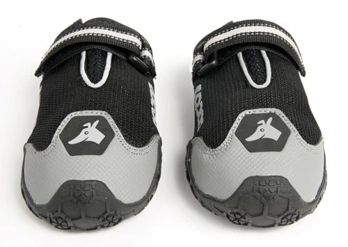 De zool loopt aan de voorkant door naar de bovenzijde voor extra bescherming van de tenen en nagels. De hondenschoen heeft een waterafstotende coating zodat het meeste vocht wordt weggehouden van de poten. De bijgeleverde sokken zorgen voor nog meer bescherming tegen water en vuil.