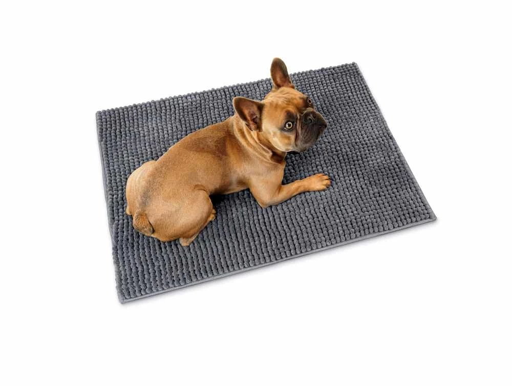 Dankzij de waterdichte en antislip onderkant van TPR (thermoplastisch rubber) blijft de droogloopmat betrouwbaar op zijn plaats totdat de hond droog en schoon is.