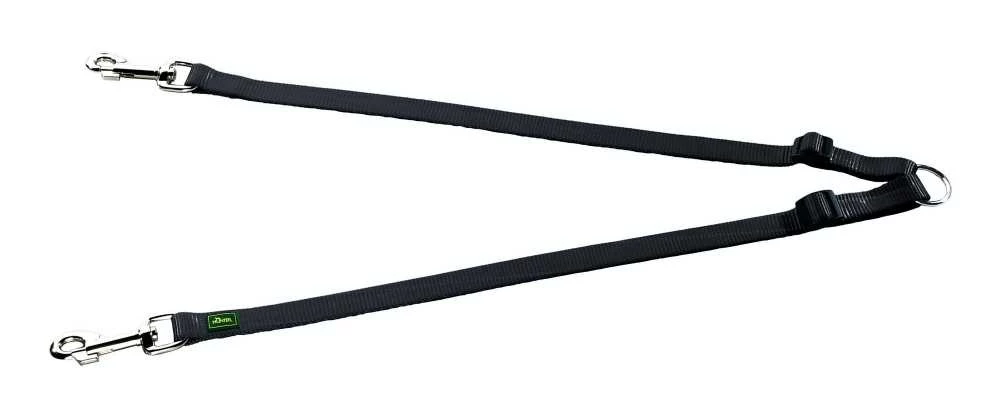Heeft u twee honden of wandelt u vaak met uw eigen hond en die van iemand anders ? Dan weet u beslist dat het moeilijk is om twee hondenriem tegelijk te lopen. Met deze slijtvaste koppelstuk van duurzaam nylon is dit probleem verleden tijd. De twee riemen van de koppeling worden gewoon aan de halsbanden van de hond vastgemaakt. Vervolgens maakt u dit koppelstuk aan een gewone hondenriem vast en bent u klaar! U heeft beide honden onder controle en hebt zelfs een hand vrij.