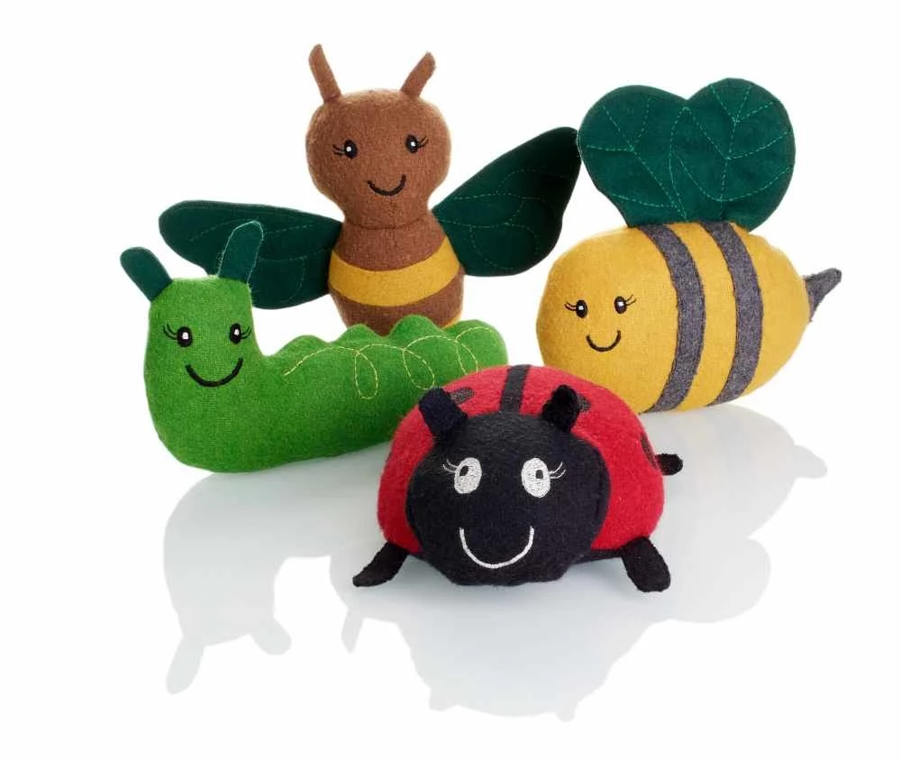 Dit speelgoed voldoet aan de hoogste normen van duurzaamheid: Elk speelgoed bestaat uit 100% gerecyclede materialen. De vulling is gemaakt van gerecycled polyester, de aangename buitenkant van upcycled wol. De speeltjes zijn wasbaar op 30 °C.