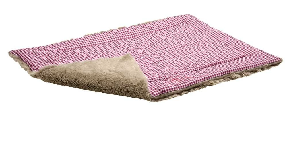 Deze hondendeken is uitgevoerd in een klassieke rode ruit. De deken is aan één zijde fraai afgewerkt met zacht pluche. De vulling bestaat uit polyester watten. De deken kan op 30 graden worden gewassen.