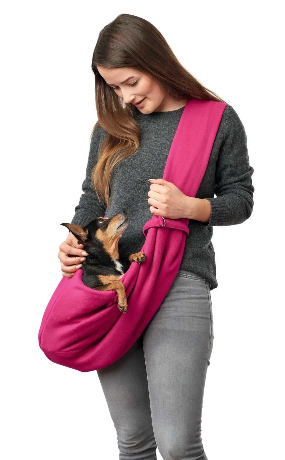 De draagtas, een draagdoek model, is extreem zacht en speciaal ontworpen voor kleine honden en puppy’s met een gewicht van maximaal 8,0 kilogram.