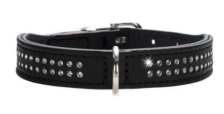 Deze zwarte Diamond Petit hondenhalsband is perfect geschikt voor de kleinere honden. De halsband is ontwikkeld en geproduceerd door specialisten zodat de halsband voldoet aan de speciale eisen van kleinere honden. Het nappaleer is niet alleen zacht en soepel, maar ook slijtvast en gemakkelijk te verzorgen. Door de zachte kleuring blijft het natuurlijke karakter van het leer behouden en komen de kleuren goed tot hun recht. De halsband krijgt zijn speciale karakter door de bijzondere decoratieve afwerking met stras.