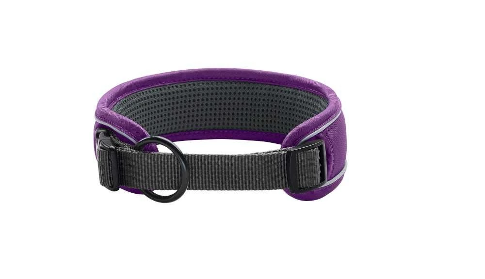 Dit is een comfortabele hondenhalsband die is gemaakt van robuust paars nylon. De halsband is gevoerd met zacht ademend mesh materiaal en neopreen zodat het zeer aangenaam is voor uw hond.