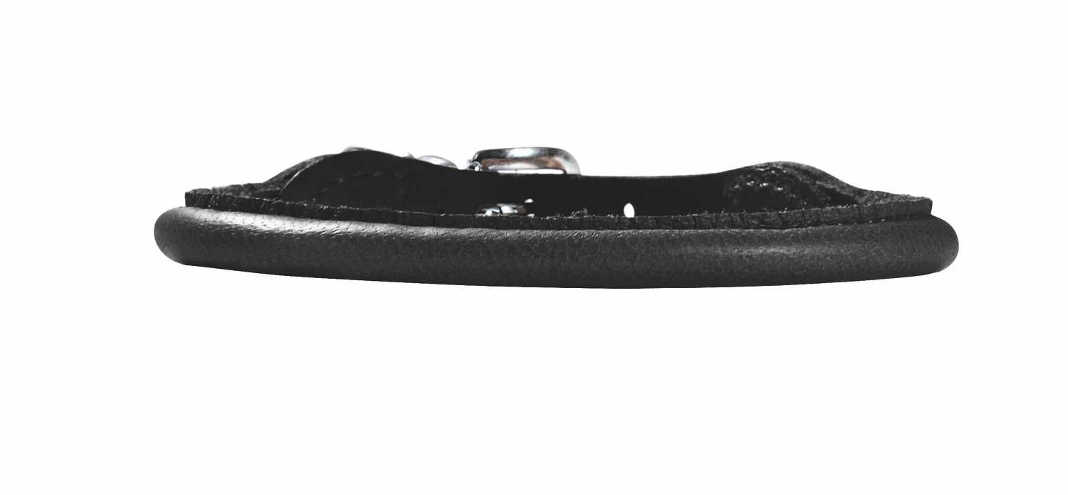 Deze lichtgewicht zwarte hondenhalsband is speciaal ontwikkeld voor kleinere honden. De slimme pasvorm is afgestemd op de kleinere lichaamsbouw. Zo is bijvoorbeeld gebruik gemaakt van lichtgewicht ringen en sluitingen. Het zachte en soepele Scandinavische elandleer en de afgeronde elementen zorgen ervoor dat de halsband bijzonder comfortabel is om te dragen en ook zeer zacht is voor de vacht.