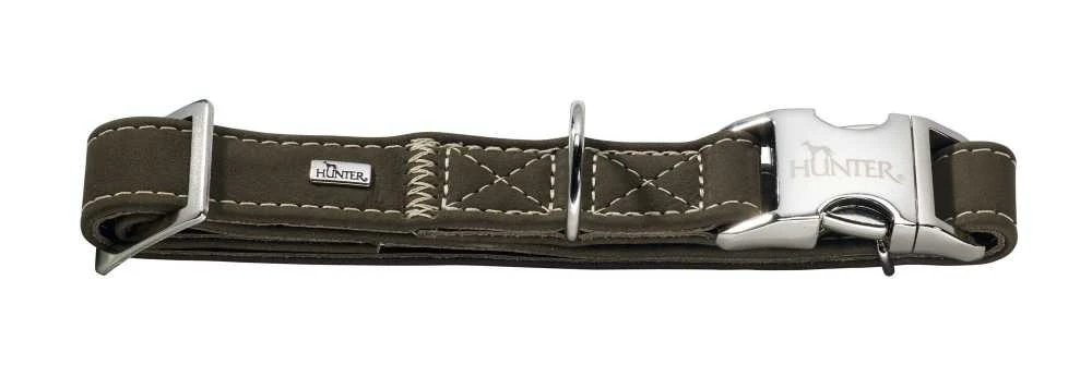 Een zachte en soepele leren halsband, die is gemaakt van zacht nubuckleer. De halsband is gevoerd, zodat de halsband bijzonder comfortabel is voor de hond. De halsband heeft een zeer robuuste kliksluiting van lichtgewicht aluminium en is traploos verstelbaar. Eenmaal goed afgesteld, past de halsband altijd perfect, omdat de instelling niet verandert bij het openen of sluiten van de halsband.
