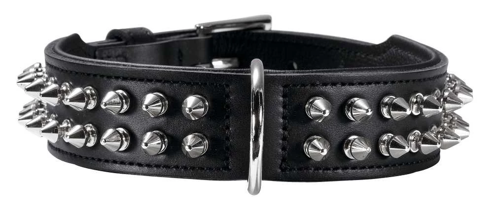 Deze halsband is een gemaakt van eersteklas dubbellaags zwart rundleer. De stoere halsband is afgezet met studs. Het volnerf leer is eersteklas, soepel, zacht en slijtvast rundleer. De halsband wordt in Duitsland met veel vakmanschap gemaakt.