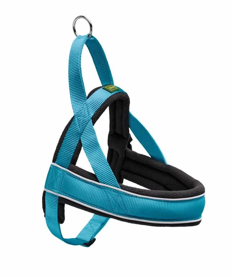 Het harnas heeft een traploos verstelbare buikriem zodat het harnas een goede pasvorm heeft voor de hond. De zachte voering van fleece rond de borst, de nek en de schouders van de hond is erg comfortabel voor de hond. De banden van duurzaam nylon en de fleecevoering maken het harnas ook zacht voor de vacht. Voor extra veiligheid heeft het harnas reflecterende strips op de banden, die de zichtbaarheid van uzelf en van uw hond in omstandigheden met weinig licht vergroten.
