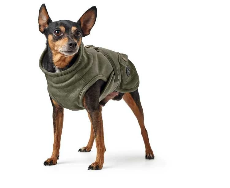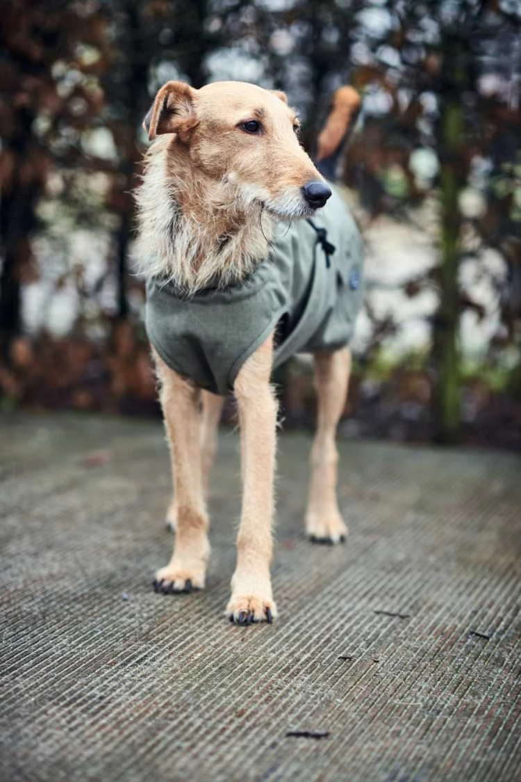 De verstelbare buikband met klittenbandsluiting garandeert volledige flexibiliteit. De hondenjas kan op max. 30 graden worden gewassen.