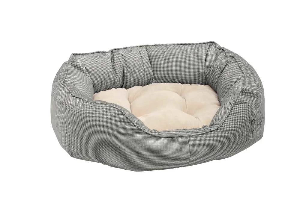 Dit is een comfortabele en gezellige hondenmand. Opvallend is de ovale vorm van de mand. De mand is voorzien van een los hondenkussen, dat u een beide kanten kunt gebruiken. Een leuk detail is dat het kussen aan de ene kant in het grijs is uitgevoerd en aan de andere kant in beige. De hoezen van de mand zijn afritsbaar. U kunt alle hoezen op max. 30 graden wassen.