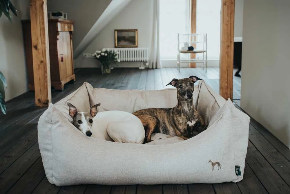 Deze hondenmand zal u meteen verrassen met de elegante en klassieke uitstraling. Deze mand is niet alleen opvallend mooi, hij is ook heel gezellig en comfortabel en past in elke kamer en elke inrichtingsstijl. De prachtige gestructureerde stof is verder verbeterd en heeft nu een mooi geborduurd logo op de voorkant. De stof is ook onderhoudsvriendelijk en kan in de machine gewassen worden op 30 ° C. Met de geïntegreerde ritssluiting kan de hoes worden geopend, zodat de vulling volledig verwijderd kan worden. De hondenmand is bijzonder zacht en comfortabel voor uw hond.Â