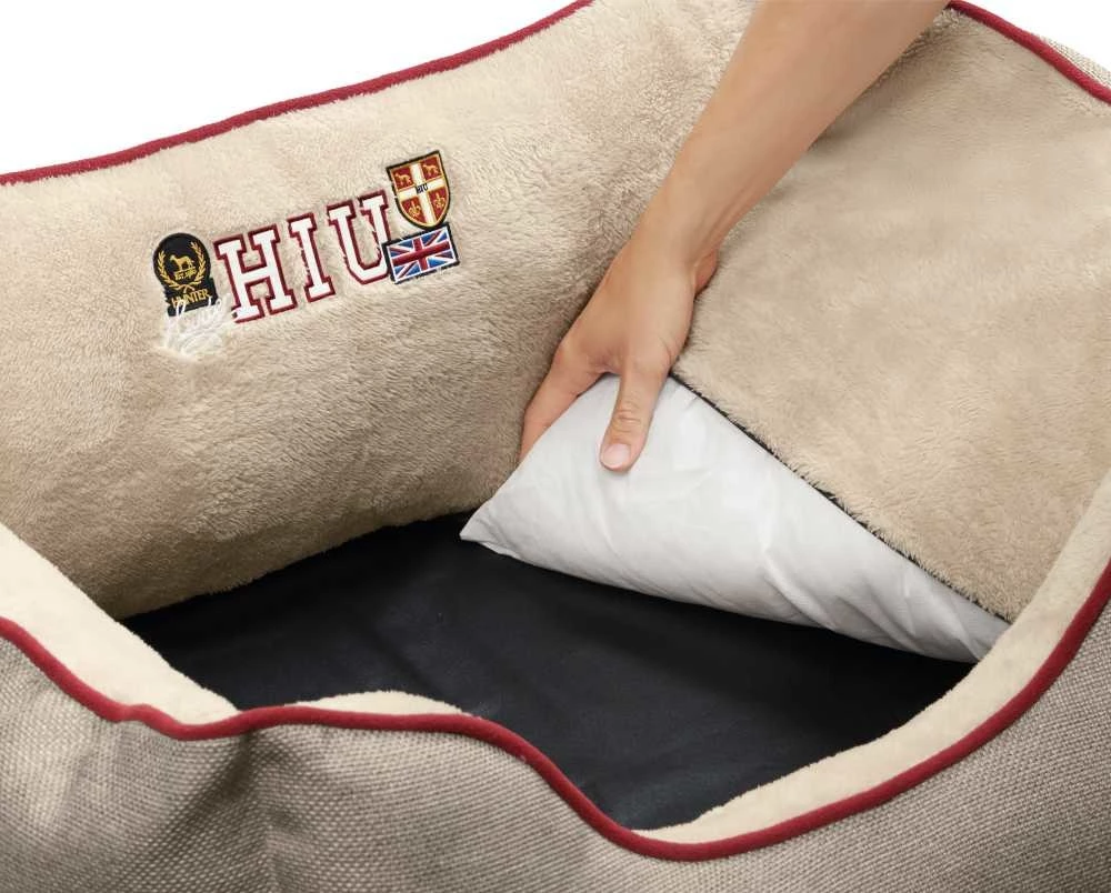 Terug naar school – Deze hondenmand presenteert zich in een trendy college-look. De bijzonder zachte hondenmand ziet er niet alleen goed uit, maar biedt de hond ook een ideaal toevluchtsoord. Het knuffelige materiaal nodigt uit om te rusten en te blijven hangen. De binnenzijde is uitgevoerd in zacht pluche.