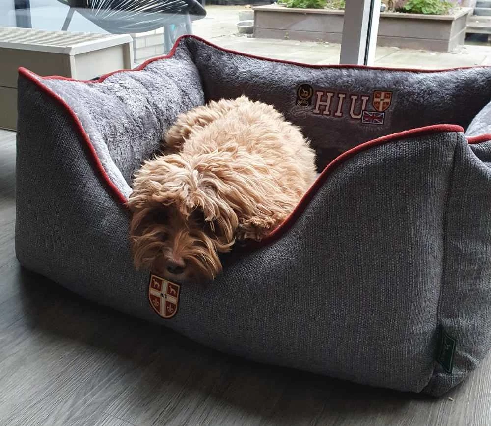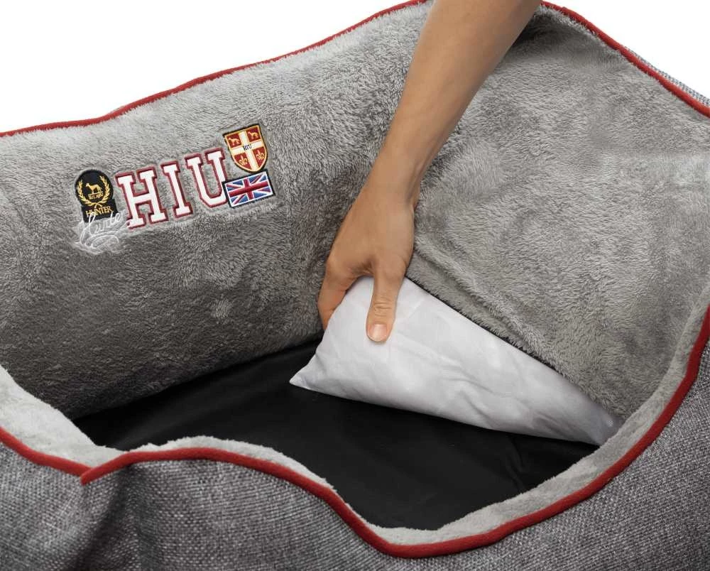 Terug naar school – Deze hondenmand presenteert zich in een trendy college-look. De bijzonder zachte hondenmand ziet er niet alleen goed uit, maar biedt de hond ook een ideaal toevluchtsoord. Het knuffelige materiaal nodigt uit om te rusten en te blijven hangen. De binnenzijde is uitgevoerd in zacht pluche.