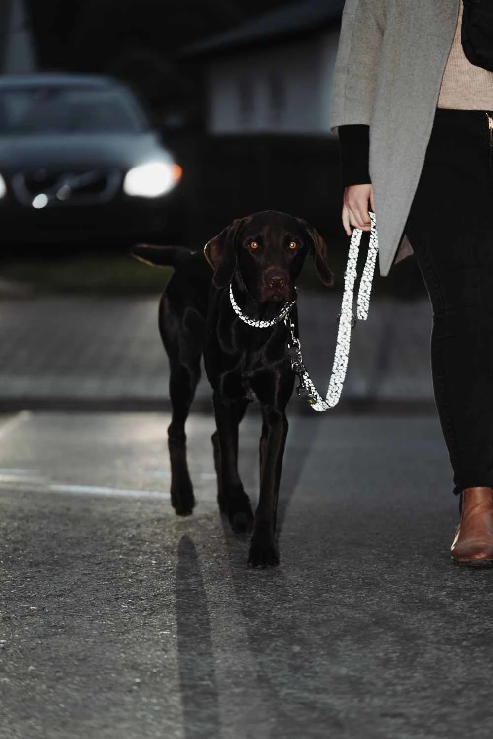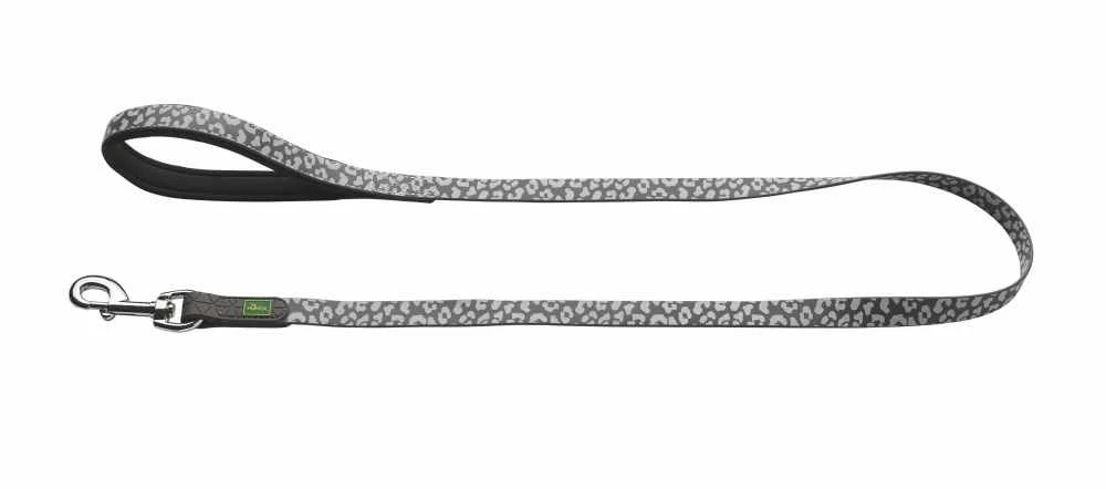 Deze chique grijze lijn valt op door de luipaard print. Het lichte materiaal reflecteert zelfs de koplampen van auto’s, fietsen etc. Dit betekent dat baasjes en hun honden goed te zien zijn, zelfs bij slecht zicht en op grote afstand. De hondenriem is gemaakt van innovatief en bijzonder robuust kunststof. Hierdoor hoeft het nauwelijks onderhouden te worden. Als de riem nat en vuil wordt door een duik in koud water of een lang modderbad, kan hij binnen enkele seconden worden afgewassen en gedroogd. Meer zorg? Niet nodig.