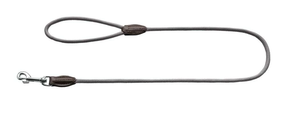 Dit is een mooie grijze hondenriem die is gemaakt van duurzaam polyamide touw. Het materiaal is waterafstotend en weerbestendig. De riem heeft dan ook weinig onderhoud nodig, het vuil kunt u er met een vochtig doekje vanaf halen.