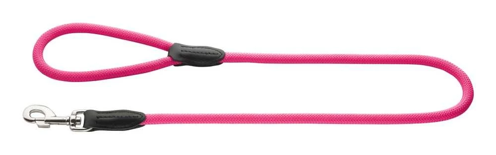 Dit is een mooie neon roze hondenriem die is gemaakt van duurzaam polyamide touw. Het materiaal is waterafstotend en weerbestendig. De riem heeft dan ook weinig onderhoud nodig, het vuil kunt u er met een vochtig doekje vanaf halen.