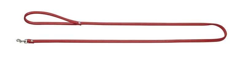 Een mooie leren hondenriem van dubbellaags rood nappa leer. Het leer is erg comfortabel en zacht. De riem heeft een handvat en een kleine vernikkelde karabijnhaak.