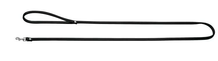 Een mooie leren hondenriem van dubbellaags zwart nappa leer. Het leer is erg comfortabel en zacht. De riem heeft een handvat en een kleine vernikkelde karabijnhaak.