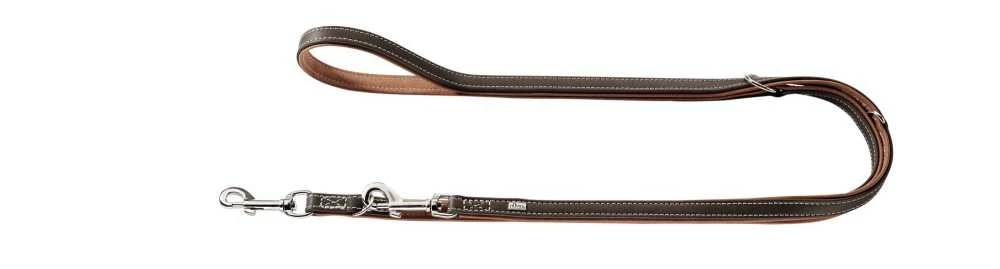 De hondenriem is drievoudig verstelbaar en heeft twee karabijnhaken.
