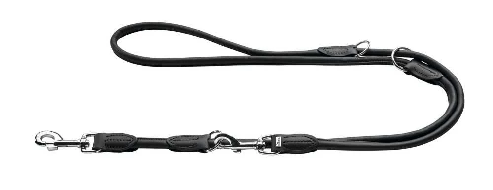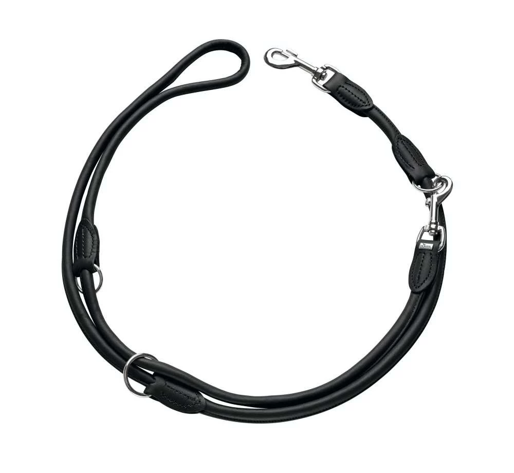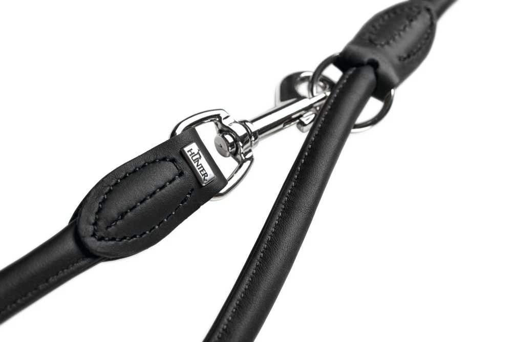 Dit is een mooie zwarte hondenriem die is gemaakt van zacht nappaleer. De riem heeft een rond profiel. De riem is drievoudig verstelbaar.