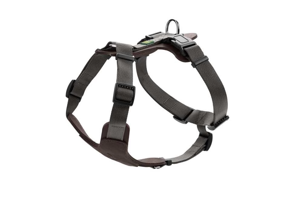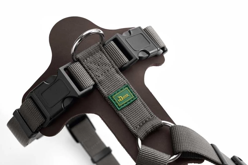 Het zit in de mix! Zorgvuldig geselecteerd rundleer en aangenaam zacht nylon vormen een perfecte symbiose in dit nieuwste Hunter hondentuigje. De combinatie van deze twee materialen is in talloze tests ideaal gebleken: het tuigje is licht en geschikt voor dagelijks gebruik, maar heeft gewatteerde voering met zacht rundleer op de drukpunten. Dit betekent dat jij en je trouwe viervoeter kunnen genieten van het natuurlijke comfort van een leren harnas, samen met het lichte gewicht en het onderhoudsgemak van nylon.