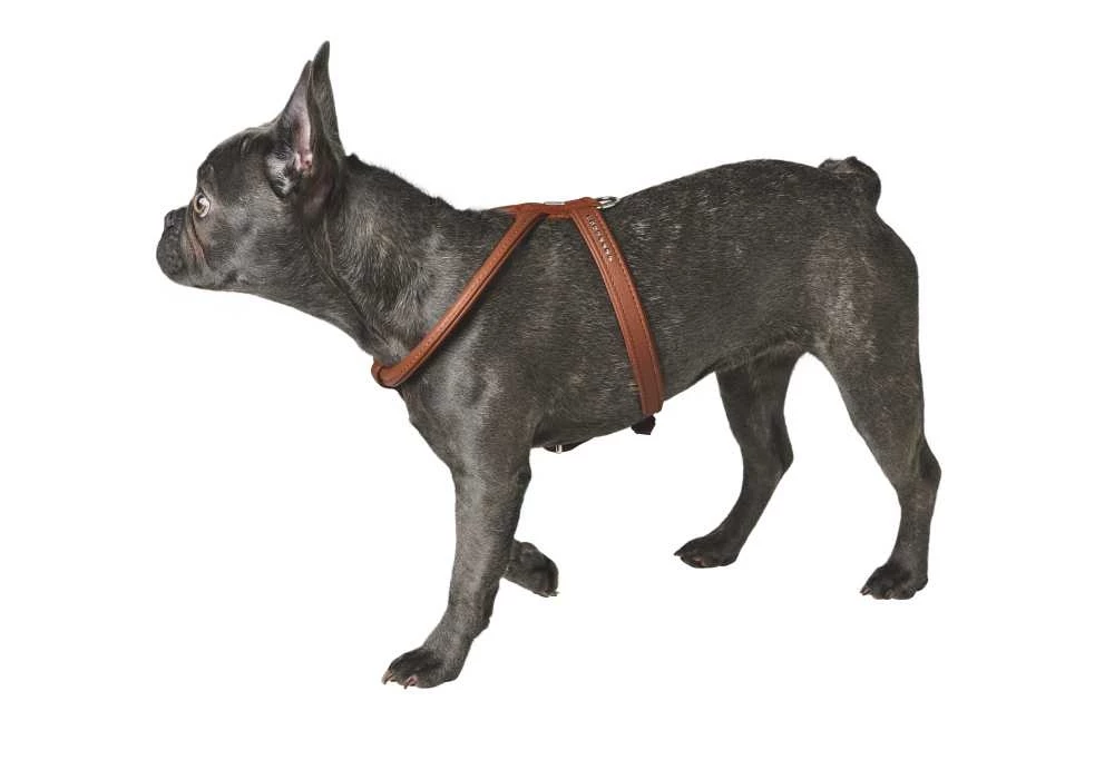 Dit beige lichtgewichte hondentuig is speciaal ontwikkeld voor kleinere honden. Het zachte harnas met glanzende stras decoraties past perfect in het bijzonder voor Pugs en Franse Bulldogs, maar ook voor kleinere honden in het algemeen. De slimme pasvorm is afgestemd op kleinere lichaamsbouw. Het zachte en soepele Scandinavische elandleer en de afgeronde elementen zorgen ervoor dat het tuig bijzonder comfortabel is om te dragen en ook zeer zacht is voor de vacht.
