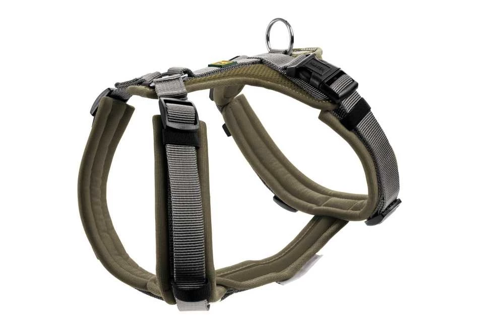 Dit is een comfortabel groen hondentuig is gemaakt van zacht mesh materiaal en robuust nylon. Het gevoerde Y tuig heeft een geweldige pasvorm en is afgewerkt met reflecterend 3M ™ Scotchlite. Het hondentuig biedt uw hond veel vrijheid in de oksels door de verlengde borstriem. U kunt het tuig op vier plaatsen verstellen.