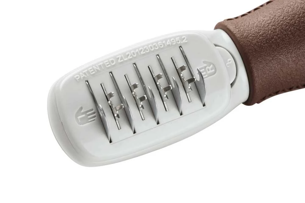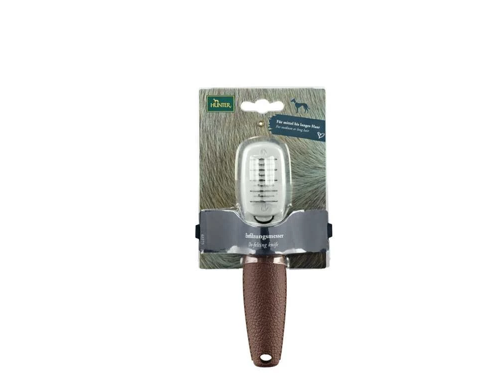 Deze kam biedt een buitengewoon praktische functie als het gaat om het verzorgen van de vacht: dankzij de draaibare kop is de kam geschikt voor zowel rechts- als linkshandige gebruikers. De kam maakt de vacht van het dier zacht en effectief glad en verwijdert klitten uit de ondervacht. Het gebruik van hoogwaardige roestvrijstalen veiligheidsmessen voorkomt blessures. De ergonomisch gevormde handgreep in hoogwaardige lederlook garandeert een gemakkelijk slipvast gebruik bij het verzorgen.