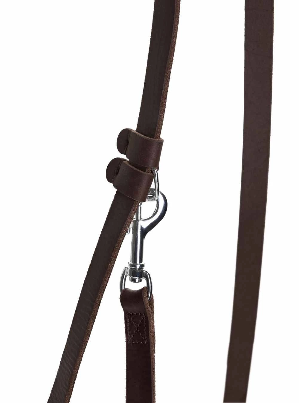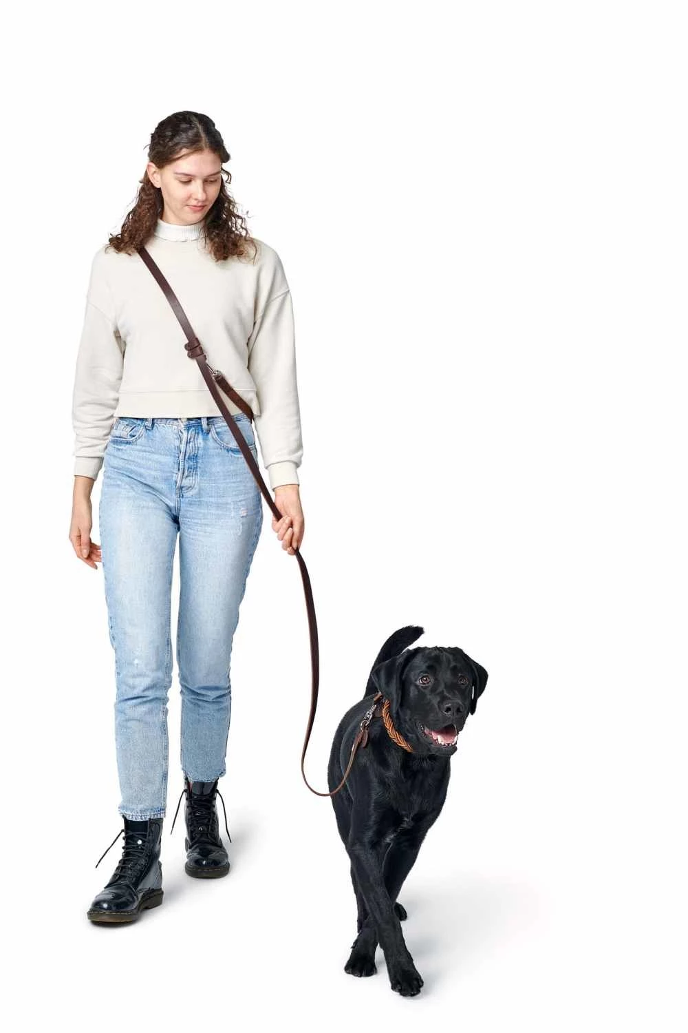 Deze leren hondenriem kunt u traploos verstellen. De riem kenmerkt zich door een eenvoudig design, leer van onovertroffen kwaliteit en een bijna oneindig aantal toepassingsmogelijkheden. Het meest opvallende kenmerk in vergelijking met klassieke lijnen is de innovatieve speciale slider van leer. Door deze eenvoudig met één hand te bewegen, kan de lengte van de riem individueel worden aangepast aan de betreffende situatie. Zo kan de riem diagonaal om het bovenlichaam worden gewikkeld of in de hand worden gehouden om de hond te leiden. De snuffel- en bewegingsradius voor de viervoeter varieert van 1,30 m tot 2,20 m – ideaal voor ontspannen wandelingen en ontdekkingstochten.