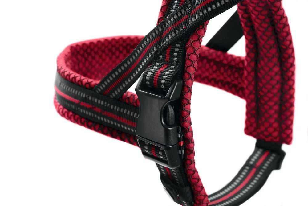 Een degelijk en comfortabel hondentuig dat is gemaakt van dat is gemaakt van zacht en ademend 3D mesh materiaal. Het tuig heeft een stevige kliksluiting aan de zijkant en een traploos verstelbare buikriem.