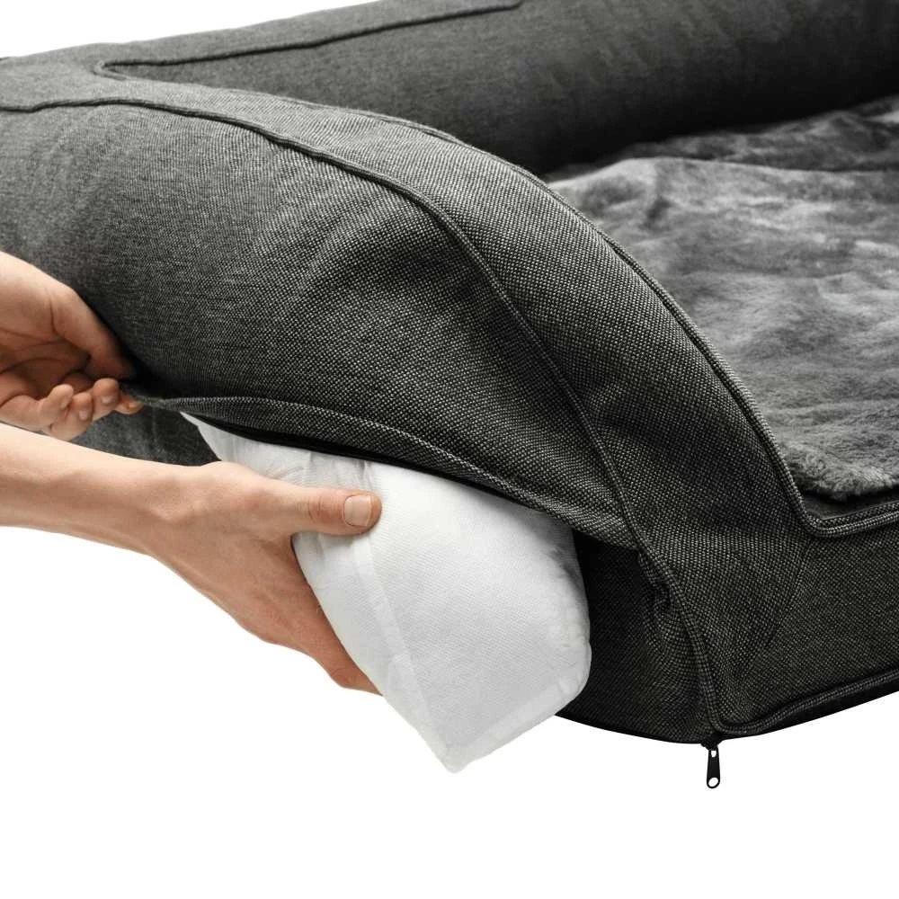 Alle honden hebben een recht op een warmde en huiselijke rustplaats. Dit geldt zeker ook voor oudere en zieke honden die extra aandacht en zorg nodig hebben. Deze orthopedische hondenmand biedt honden met gewricht- of rugproblemen alle extra comfort die zij nodig hebben. De orthopedische hondenmand heeft geen verhoogde rand aan de voorkant zodat uw hond er gemakkelijk in- en uit kan stappen. De vulling met geheugenschuim maakt het extra gemakkelijk voor de hond om er op te gaan liggen. De deken met een zacht pluche heeft een afsluitbare vak waarin u een incontinentie pad kunt plaatsen.
