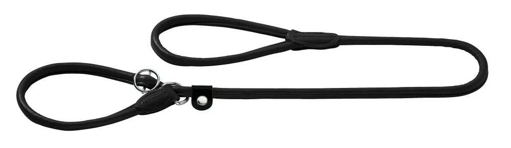 Dit is een fraaie sliplijn van eersteklas zwart elandleer. Dit bijzondere Scandinavische leer is zeer zacht en warm. Een sliplijn combineert een hondenriem met een geïntegreerde hondenhalsband.