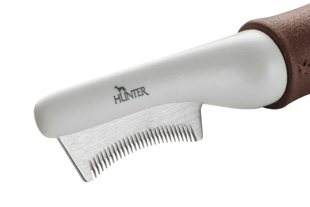 Zelfs moeilijk bereikbare plaatsen zijn gemakkelijk te bereiken met dit gebogen trimmes. Het is daardoor mogelijk om moeiteloos losse bovenvacht te verwijderen, vooral rond de buik en rug. Het hoogwaardige roestvrijstalen mes zorgt keer op keer voor ideale resultaten voor honden met zowel kort, halflang als lang haar. Perfecte verzorgingspraktijken met een stevige grip: de ergonomisch gevormde greep in een hoogwaardige lederlook garandeert dat het mes antislip en gemakkelijk te gebruiken is.
